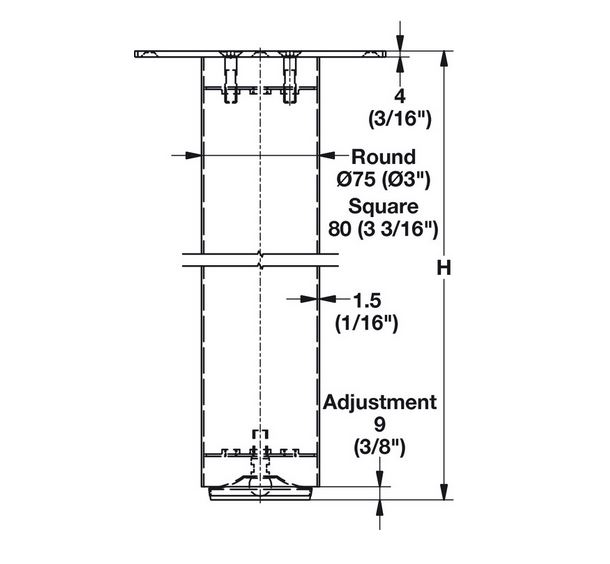 • An optional (non-adjustable) foot is available if permanent anchoring of leg is required