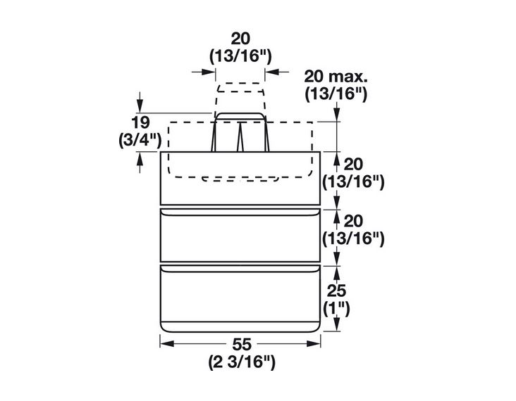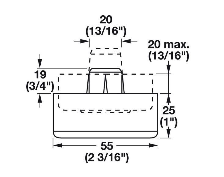 Two-section furniture foot is simply knocked into place and can be height adjusted by 20 mm (total height 45 mm)