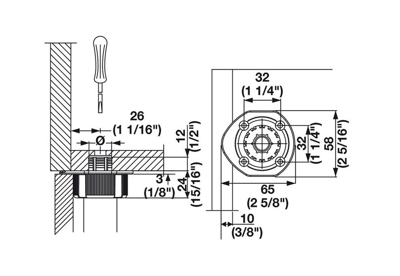 Hafele 637.19.952 Mounting Socket, Press-Fit, 10 mm Version with Pound-In Dowel, Black