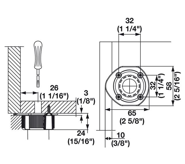 Hafele 637.19.964 Mounting Socket, Screw-Mount with M10 Screw, Black