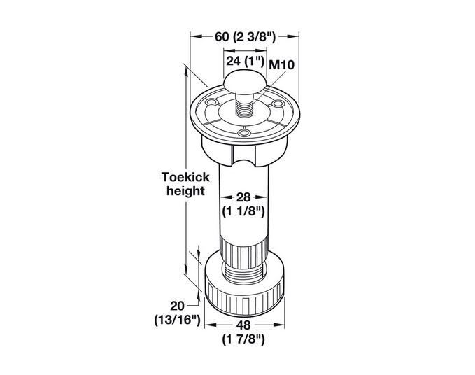 Hafele 637.45.371 Base Cabinet Leveler, 28 mm Diameter, 150 mm Toekick Height, Includes Mounting Plate, Black