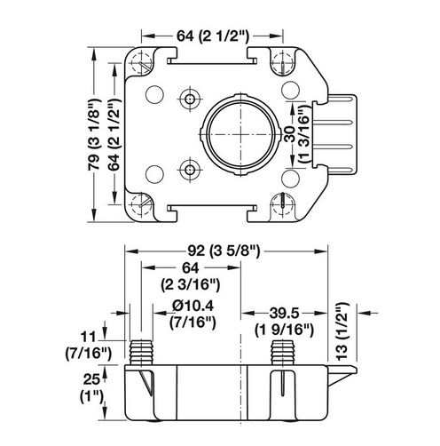Hafele 637.76.334 Mounting Plate, for Häfele Axilo™ 78 Plinth System, Häfele Axilo™ 78 Plinth Adjusting Fitting System, Press-Fit, Black