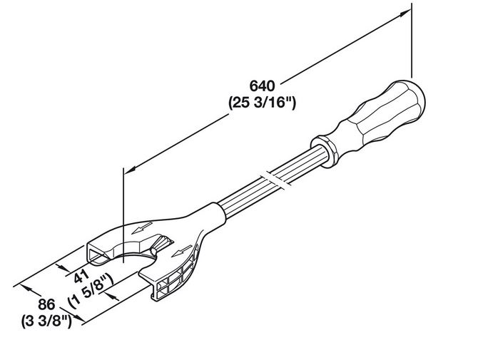 Application: For ergonomic and time-saving height adjustment of AXILO™ 78 plinth adjusting fitting system in the entire plinth area, also for corner cabinets, for example