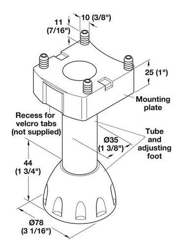Heights listed are total, including mounting plate, tube and adjusting foot