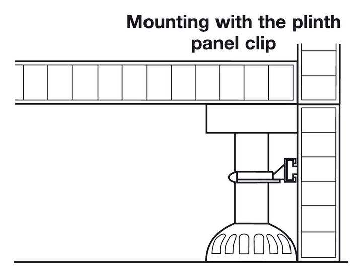 Plinth panel attaches with the clips shown, or with Velcro applied to the mounting plate recess