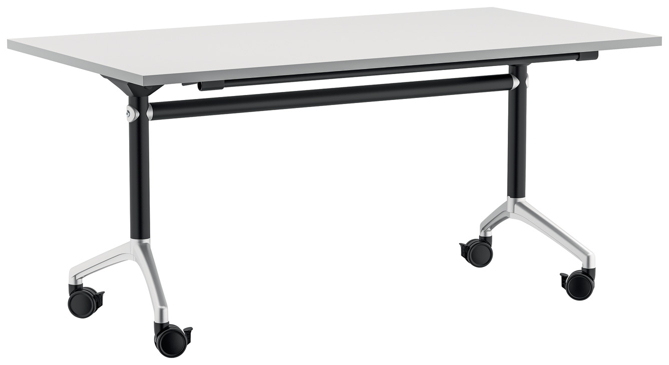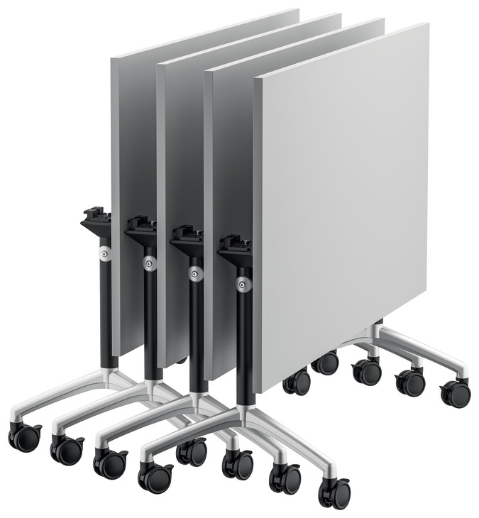 Folding table mechanism for conference rooms, training centers, etc.