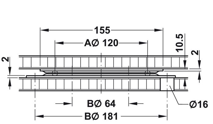 Turntable (A on the picture below): 120 mm
