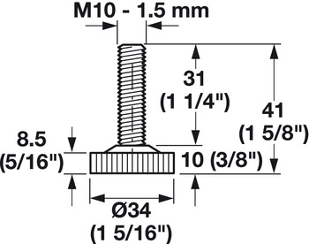 Hafele 651.01.330 Base Leveler, M10 x 31 mm, 34 mm Diameter, 41 mm Length, Black