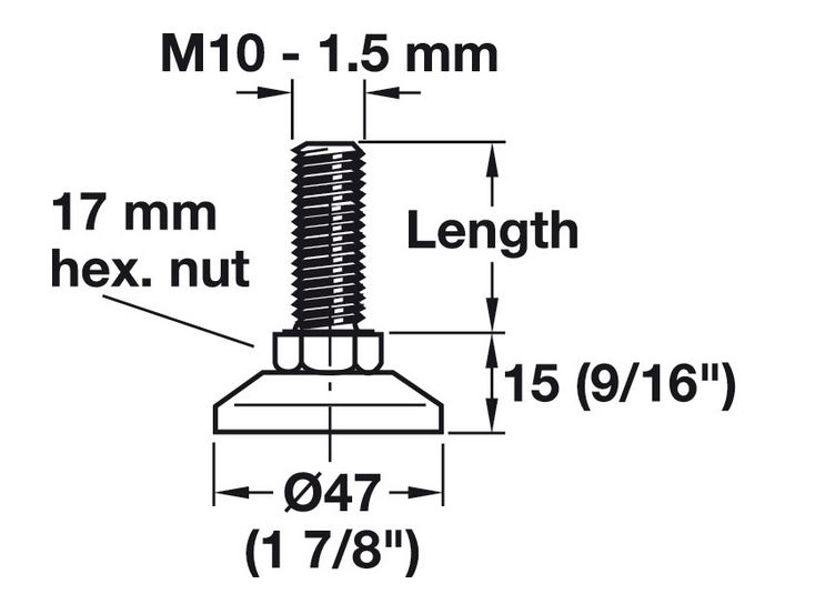 Hafele 651.01.500 Base Leveler, M10, Fixed, 47 mm Diameter, 50 mm Length, Black