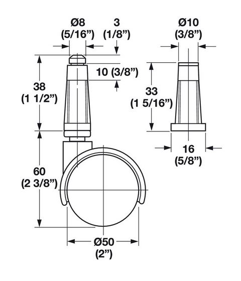 Hafele 660.89.323 Caster, Plastic Socket For Press Fitting, 77 lbs Load-Bearing Capacity, 50 mm (2") Diameter, Without Brake