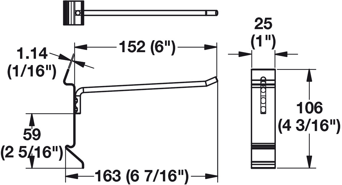 Locking feature: The hook engages automatically when installing, and once seated into the slot of the HandiWALL® the lock will then close and hold it firmly in place. To remove it, simply press down on the spring-loaded lock.