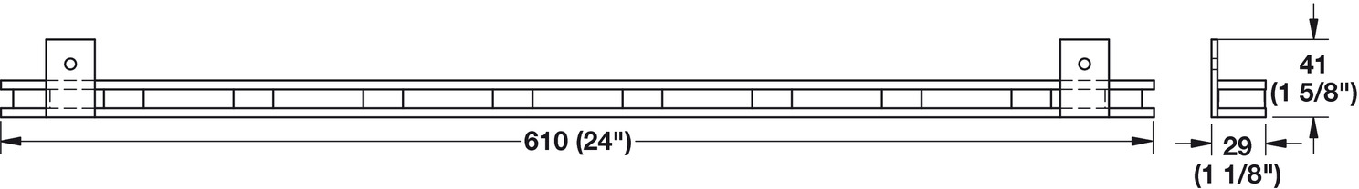 Dim. (W x D x H): (24 x 1-1/8 x 1-5/8") 610 x 29 x 41 mm