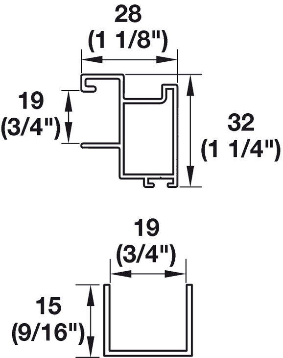2 Upper/Lower Door Profile (1.2 m, 3' 11-1/4"), Anodized Aluminum