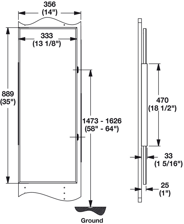 35" mirrors allow for installation above jewelry drawers, inside upper hanging sections or anywhere you’re a little short on space.