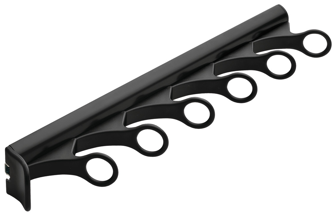 Hafele 807.54.334 Scarf Rack, TAG Synergy Collection, 6 Hook, With 3/4 Extension Slide, 358 mm (14-1/8") Length, Anodized Aluminum, Black