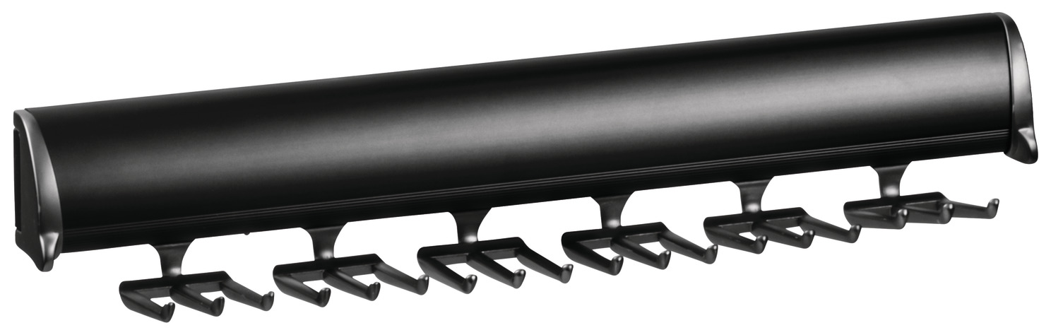 Hafele 807.67.503 Tie Rack, TAG Synergy Elite Collection, 18 Hook, With Full Extension Slide, 352 mm (13-7/8") Length, Anodized Aluminum, Black