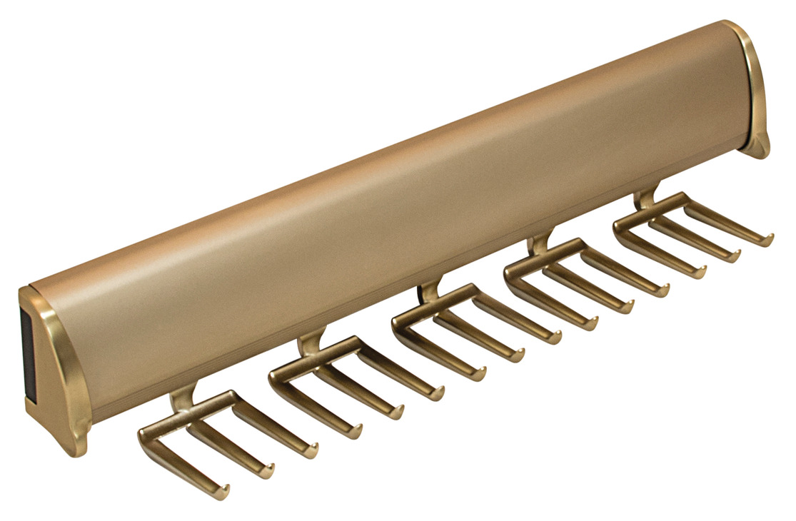 Hafele 807.67.901 Tie Rack, Tag Synergy Elite Collection, 15 Hook, 11-7/8", Matt Gold