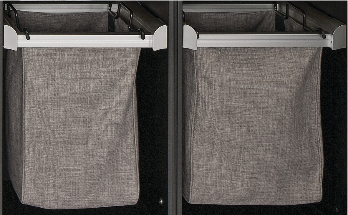 Hampers are easy to remove and carry to the laundry room with one hand.