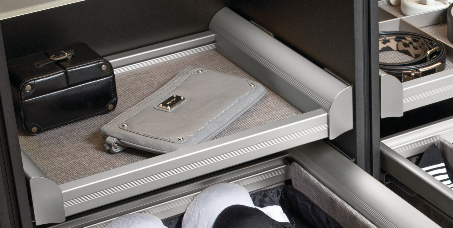 Jewelry trays and dividers customize the pull-out shelf
