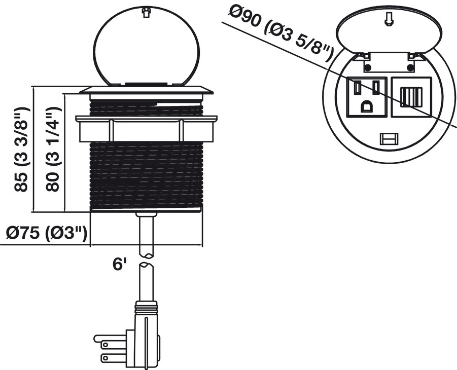 Supplied with: 6' 14AWGx3C power cord