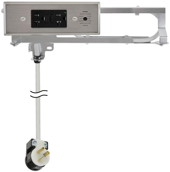 Features 3' long heavy-duty 12 AWG power cord with NEMA 5-20P plug and 20 amp receptacle