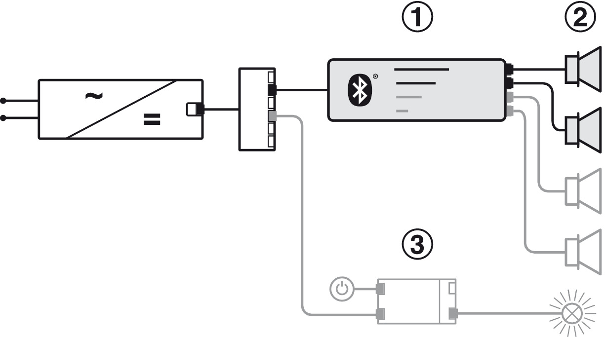 Supplied with 1 Bluetooth® receiver with 2 m (78-3/4") lead, 4 connections for exciter speakers and 2 exciter speakers