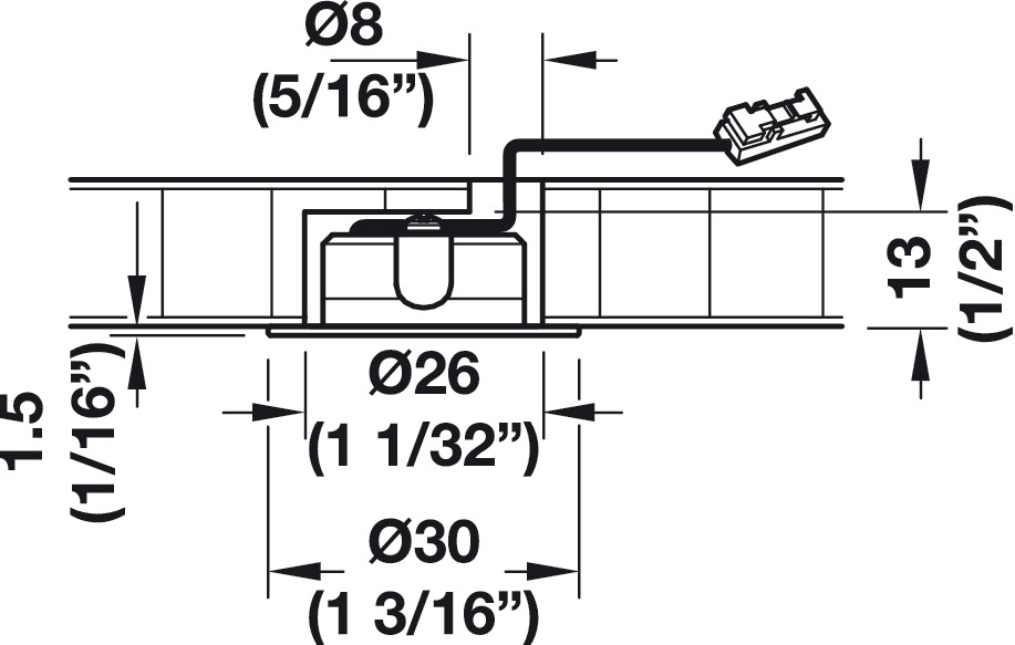 Hafele 833.72.060 Mini Puck Light, Loox LED 2023, 12 V, 26 mm Drill hole, 3000 K Warm White, Polished Chrome