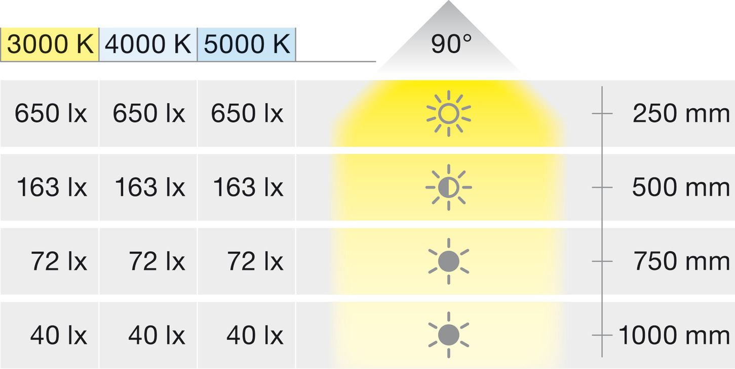 Degree of protection: IP44 (recess mounted light); IP20 (surface mounted downlight)
