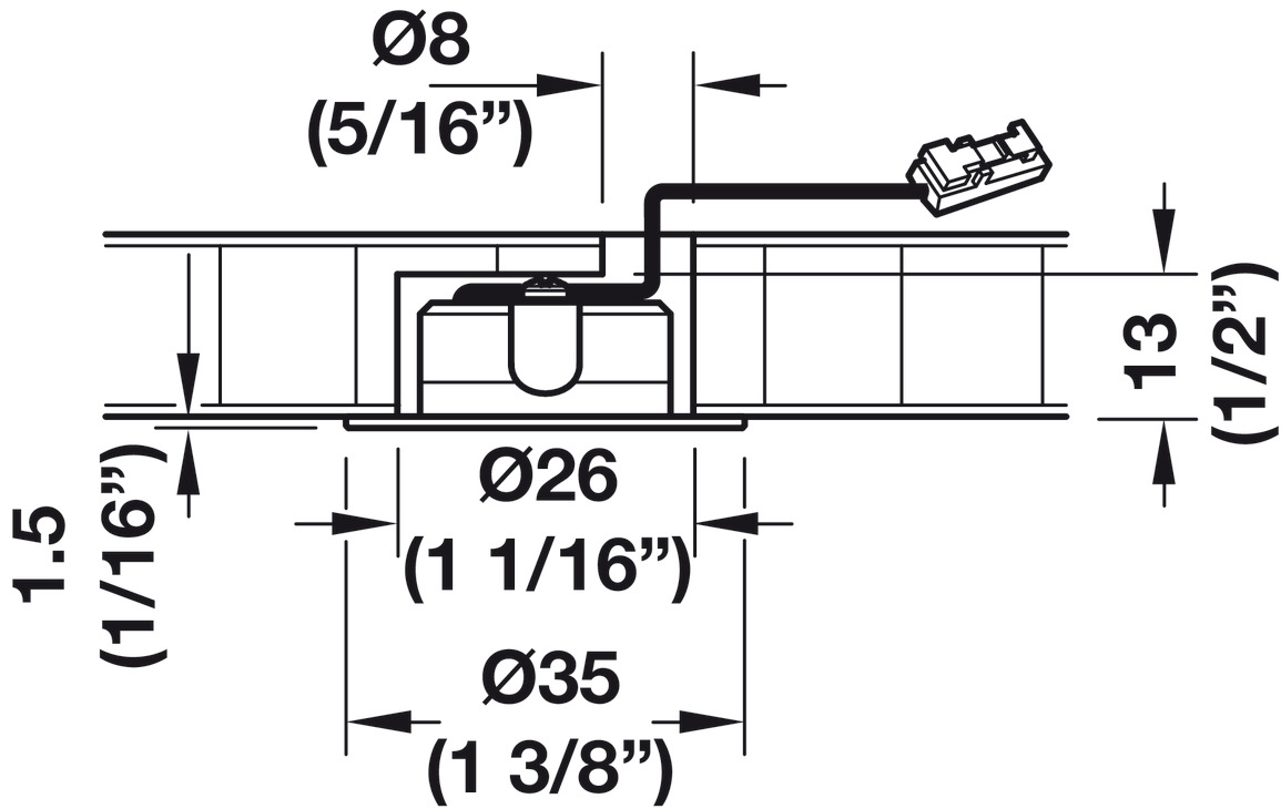 Suitable for mini hinge drill hole Dia. 26 mm (1-1/32")
