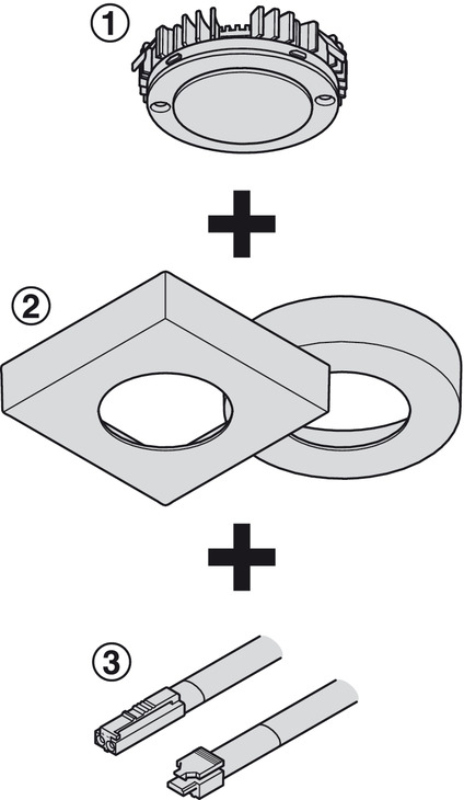 - Modular Puck Light, Modular, monochrome, Häfele Loox5 LED 2092, aluminum, 12 V: 833.72.474, 833.72.475, 833.72.476, 833.72.477