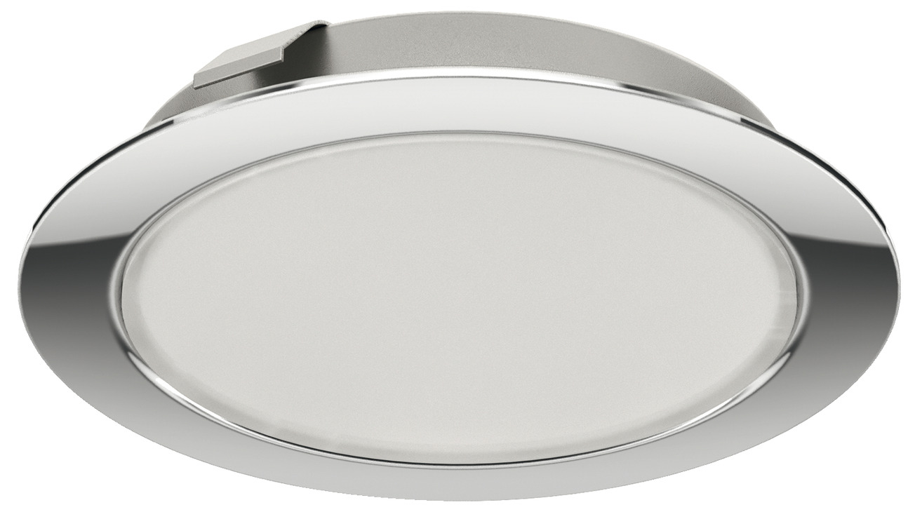 Hafele 833.72.300 Recess/Surface Mounted Light, Monochrome, Loox LED 2047, 12 V, 55 mm Drill hole, Warm White 3000 K, Polished Chrome