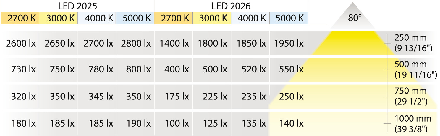 Additional information: The degree of protection with housing for undermounted light is IP20