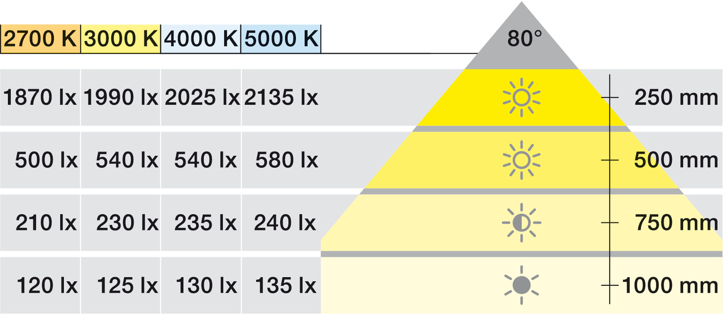 - Luminous efficacy (Lm/W): 65 Lm/W