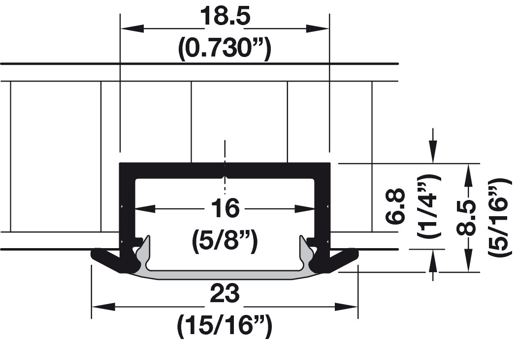 Mounting: recess mounted groove, 6.8 (1/4") deep