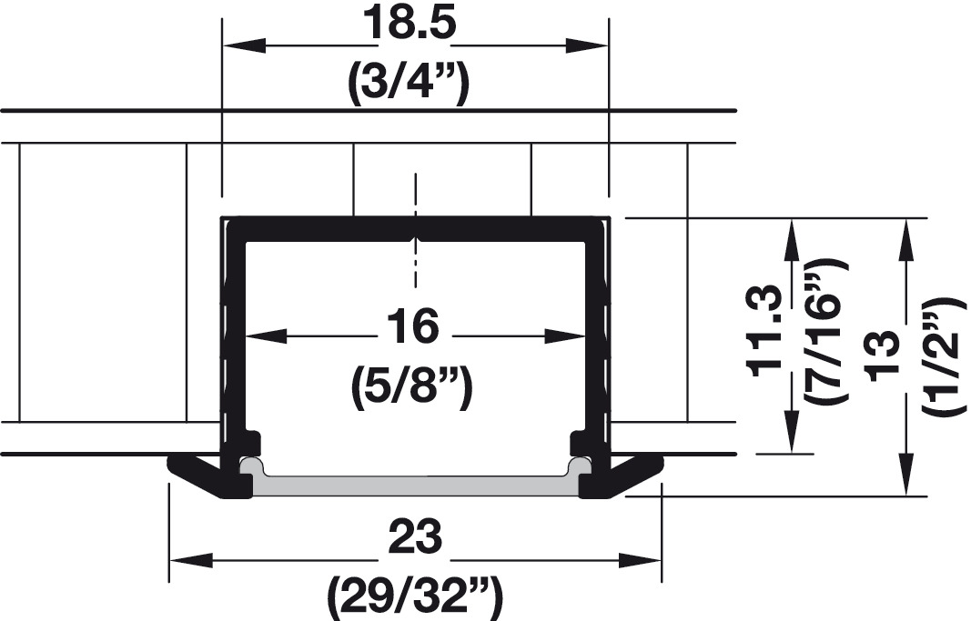 Mounting: recess mounted groove, 11.3 (7/16") deep