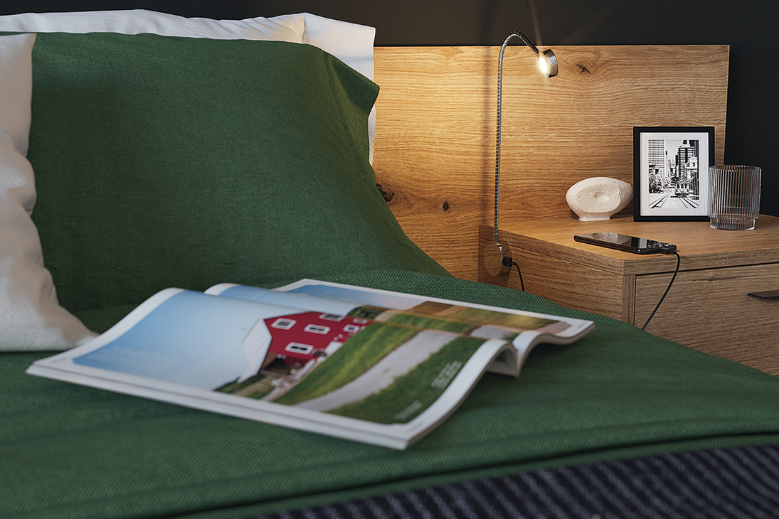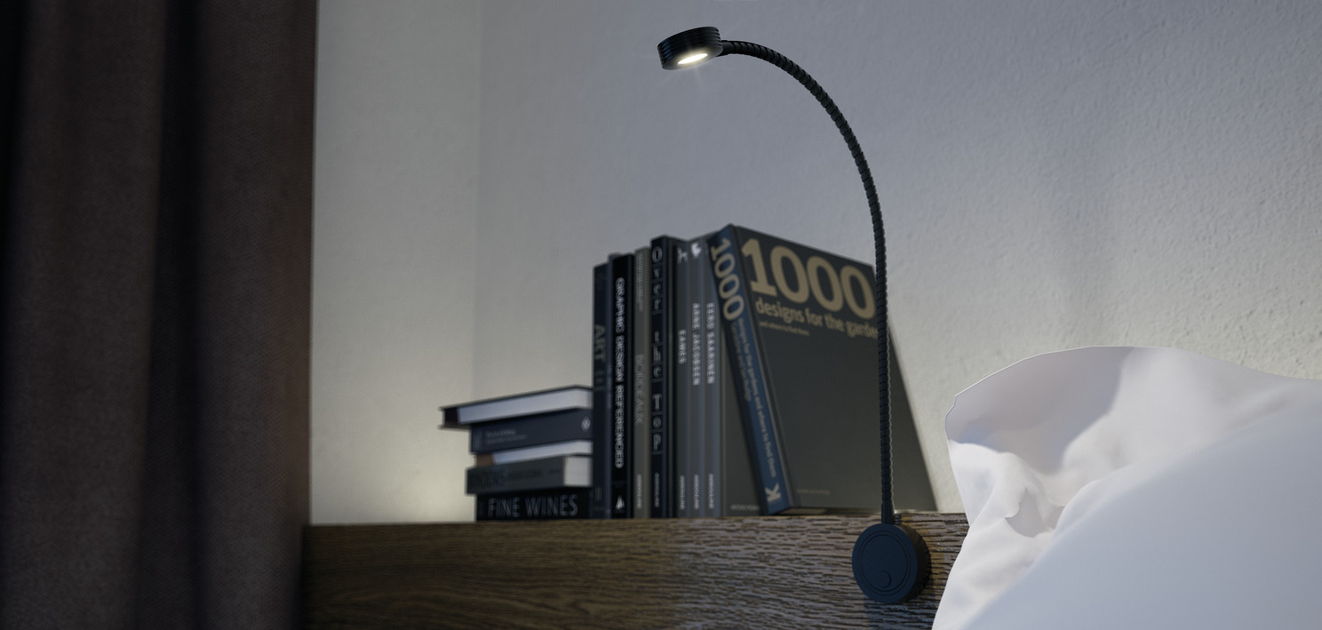 Hafele 833.74.089 Flexible Light, Häfele Loox5 LED 2034, 12 V, 1.4 W, Bedside Light/Reading Light with Integrated USB Charging Station, Push Switch, 2 Brightness Settings, Warm White 3000 K, Aluminum, Chrome Plated