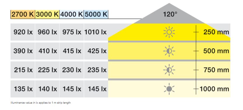 Maximum visual strip length applies for an imperceptible drop in luminous flux of max. 30%.