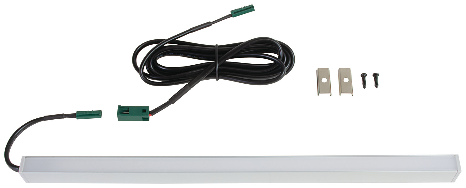 Hafele 833.86.050 Surface Mounted End Light Bars, With Linkable Cable, 24 V, Profile 2103 with Loox LED 3087, Multi-White 2-Wire, 762 mm (30") Length, Aluminum, Kit