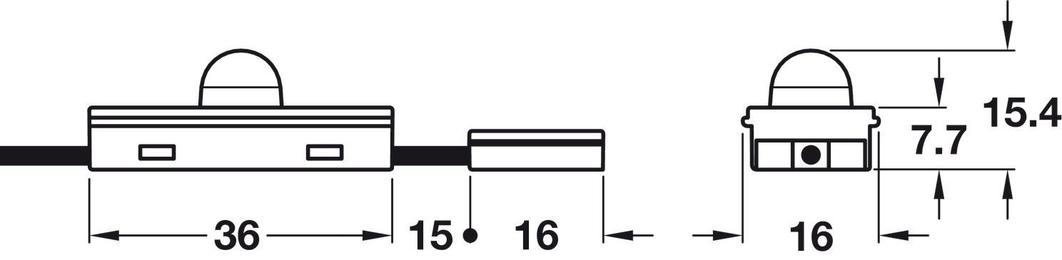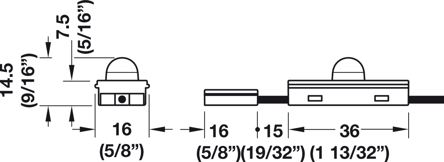 Installation reference: Suitable for Loox LED strip lights with width of 10 mm (3/8") in Loox aluminum profiles with internal dimension of 16 mm (5/8") and protruding diffusers for push fitting.