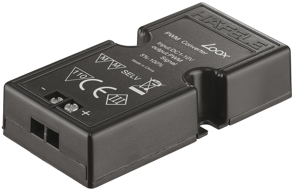 Hafele 833.89.144 Dimmer Interface, 0 - 10 V, Modular For 12 V and 24 V System, 1-10 V, For 12 V, 24 V and 350 mA Systems, Plastic, Black
