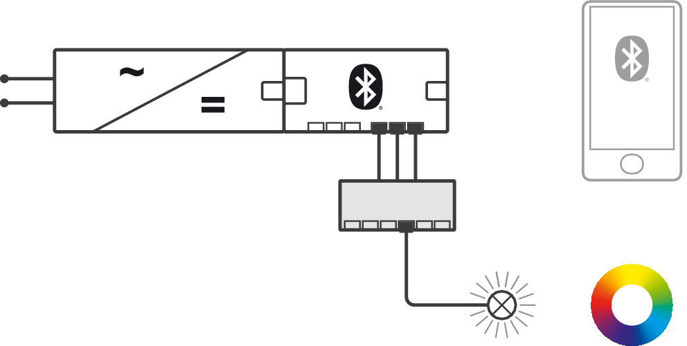 Application: for connecting RGB lights to the Häfele Connect Mesh 6-way distributor