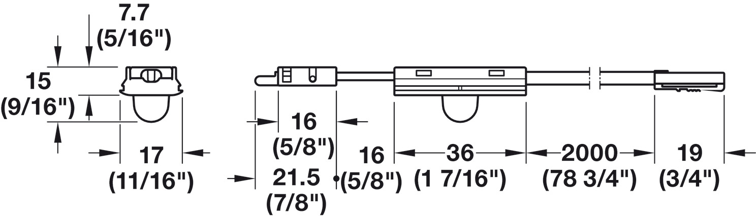 Supplied with: 1 switch with clip/plug and 2 m (78-3/4") lead