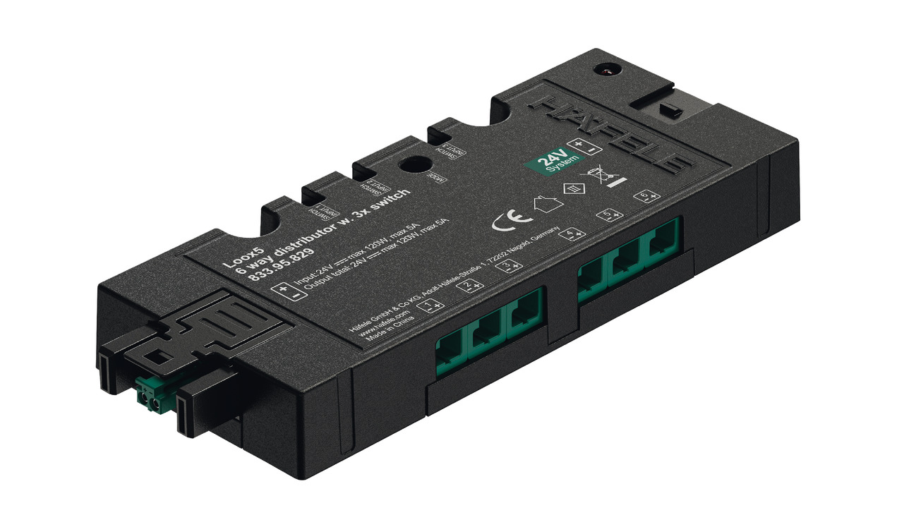 Hafele 833.95.829 6-Way Distributor, Häfele Loox5, With Multi-Switching Function, 24 V, 90 W, Plastic, Black