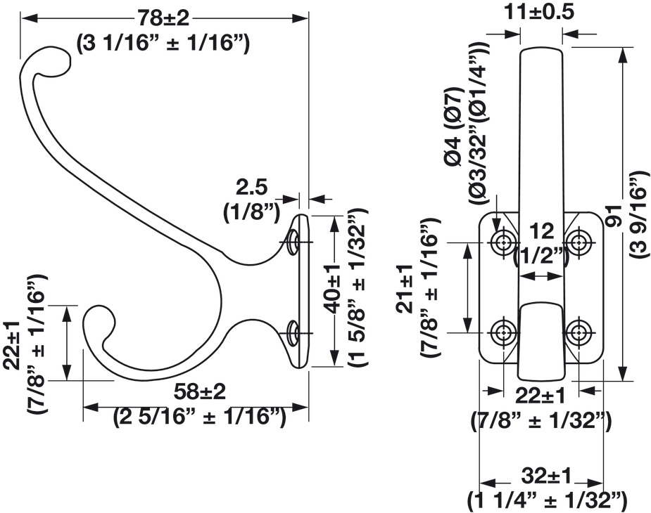 Hafele 845.08.620 Hat & Coat Hook, 32 mm x 78 mm x 91 mm (1-1/4" x 3-1/16" x 3-9/16") Width x Depth x Height, Zinc, Matt Nickel