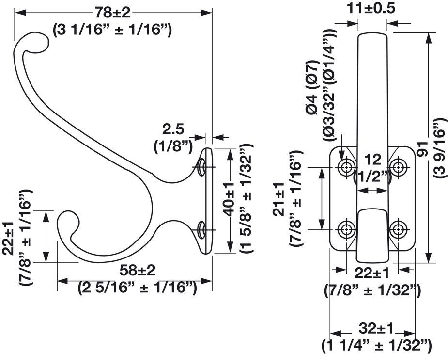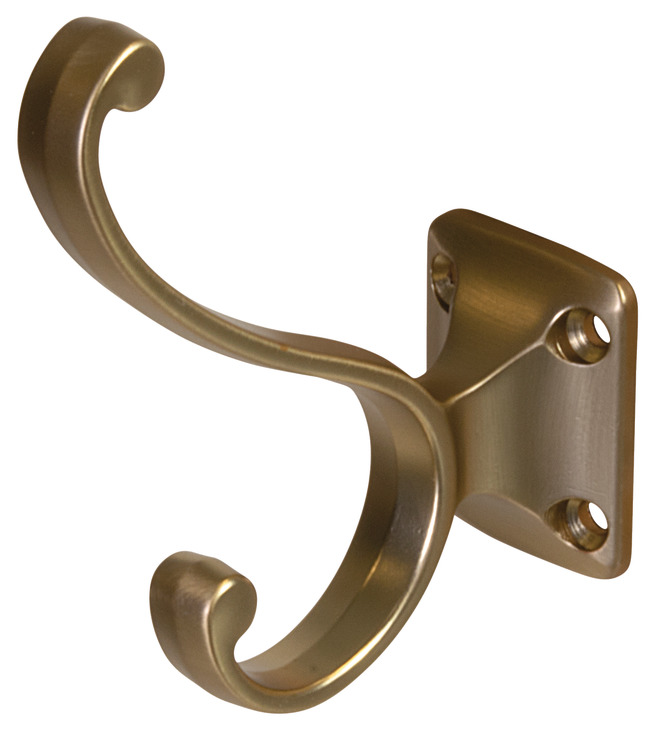 Hafele 845.08.740 Hat & Coat Hook, 32 x 78 x 91 mm (1-1/4" x 3-1/16" x 3-9/16") (W x D x H), Zinc, Matt Gold
