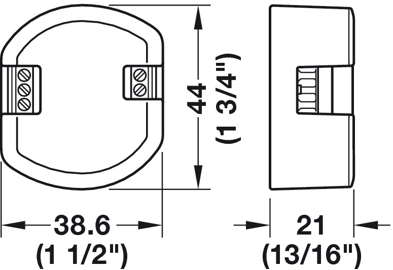 Dimensions L x W x H: (1-9/16 x 1-3/4 x 13/16") 39 x 44 x 21 mm