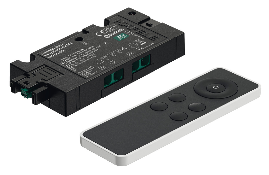 Hafele 850.00.984 Distributor and Remote Control Set, Hafele Connect Mesh Eco, Multi-White, 4-Port, 24 V, Connected in the Factory for Immediate Start-up, 72 W, Plastic, Black