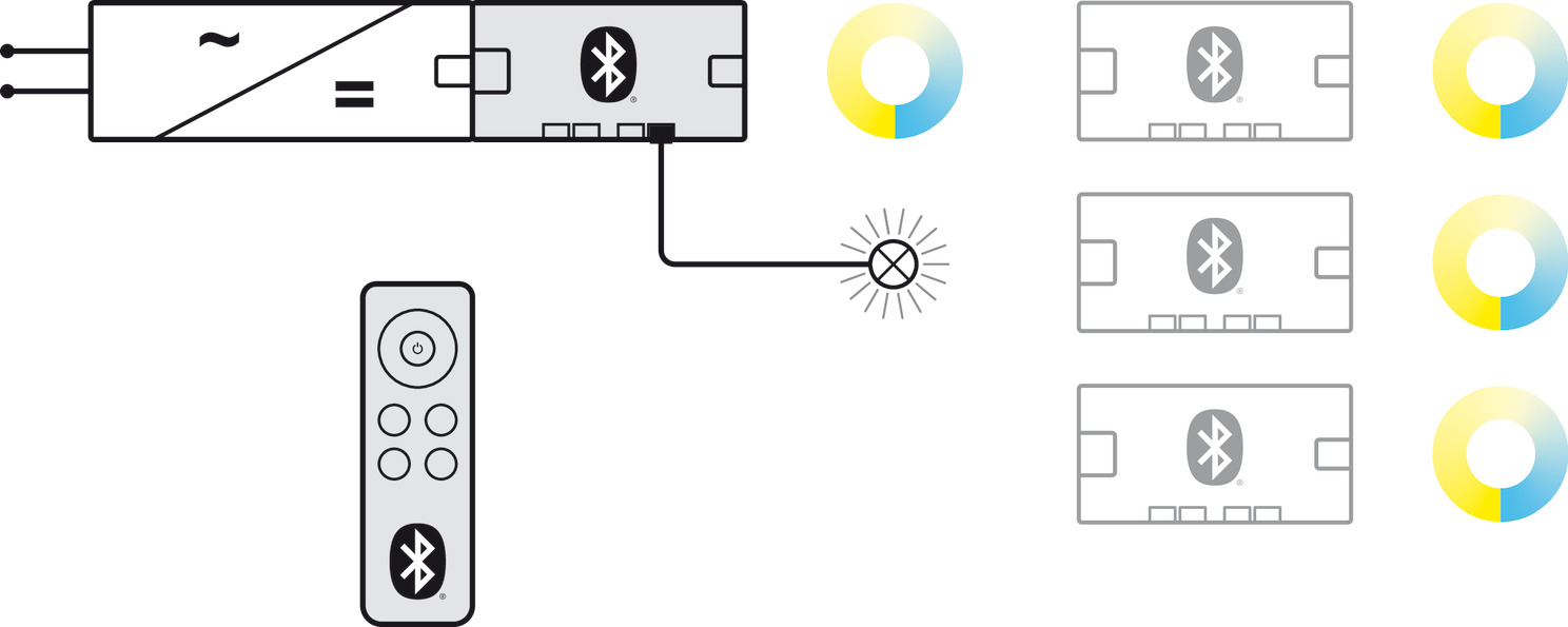 Area of application: For on/off switching and dimming (0-100%) and multi-white colour change