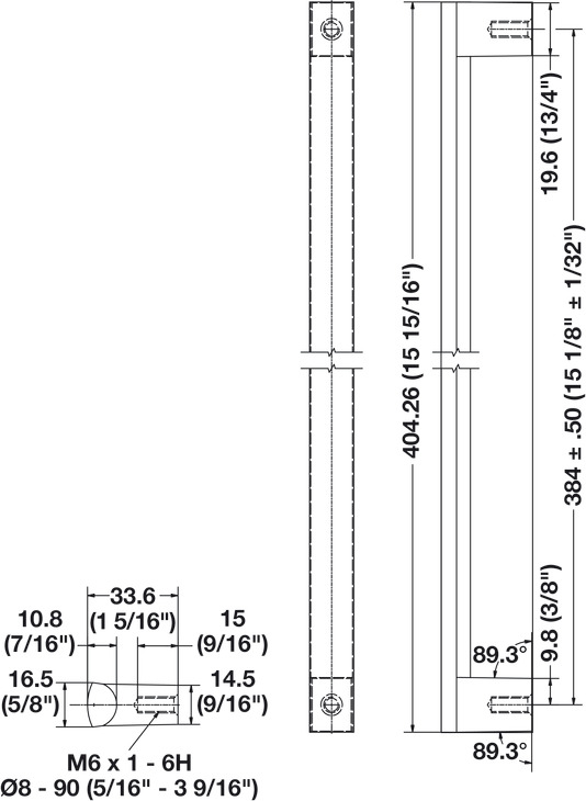Hafele 901.00.591 Door Pull, Single Concealed Mount, 384 mm (15-1/8") Centre To Centre, Zinc, Oil-Rubbed Bronze