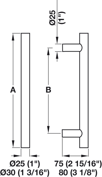 Hafele 903.00.612 Pull Handle, 30 mm x 1200 mm (1-3/16" x 47-1/4") Diameter x Length, Stainless Steel, Matt